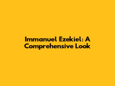 Immanuel Ezekiel: A Comprehensive Look