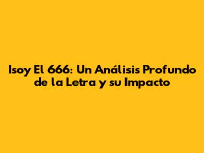 Isoy El 666: Un Análisis Profundo De La Letra Y Su Impacto