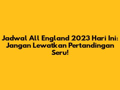 Turnamen All England 2023 selalu jadi salah satu ajang paling prestisius di dunia bulu tangkis. Di sinilah para pemain terbaik dari seluruh dunia berkumpul untuk memperebutkan gelar juara yang sangat bergengsi. Jadi, buat kalian yang pengen tahu jadwal All England 2023 hari ini, udah siapin catatan belum? Karena kita bakal bahas tuntas semua jadwalnya, mulai dari babak kualifikasi sampai partai puncak. Dijamin, kalian bakal update terus sama perkembangan turnamen ini. Inget ya, guys, All England ini bukan cuma soal siapa yang menang, tapi juga soal perjuangan, strategi, dan semangat juang yang luar biasa dari setiap atlet. Setiap pertandingan punya cerita tersendiri, dan kita sebagai penonton beruntung bisa menyaksikan langsung evolusi permainan bulu tangkis dari waktu ke waktu. Pantengin terus informasi terbaru biar nggak ada satupun pertandingan seru yang terlewat. Dengan mengetahui jadwalnya, kalian bisa lebih siap untuk mendukung atlet favorit kalian, entah itu dengan nonton langsung kalau beruntung bisa dateng ke sana, atau dengan nonton siaran langsung dari rumah. Jadwal ini penting banget buat ngatur waktu nonton kalian, biar nggak bentrok sama kesibukan lain. Jadi, siapkan diri kalian, karena All England 2023 bakal menyajikan tontonan bulu tangkis kelas dunia yang nggak boleh dilewatkan!
