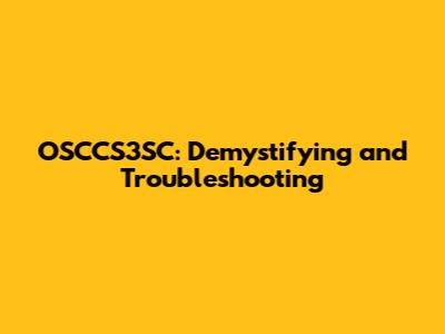 OSCCS3SC: Demystifying And Troubleshooting