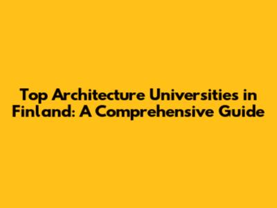 Top Architecture Universities In Finland: A Comprehensive Guide