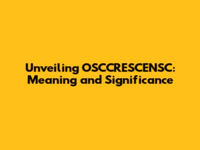 Unveiling OSCCRESCENSC: Meaning And Significance