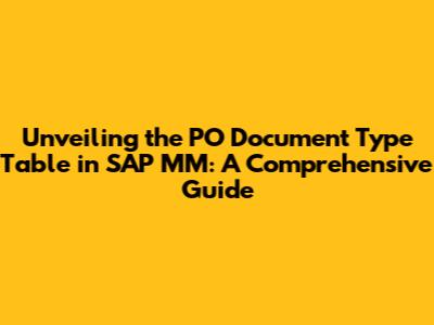 Unveiling The PO Document Type Table In SAP MM: A Comprehensive Guide